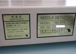製品中にまぎれこんだ縫い針、 まち針、 ミシン針、 またはそれらの折れ針などを検出すると、 ブザーで警報を発し検出ランプを点灯します。
