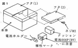 | ■取扱についてのご注意 1.電池は入っておりませんので最初に電池を入れてからご使用下さい。 2.電池は次のようにして本体に入れて下さい。(図1参照) @フタ(2)のM2ネジをはずし、フタを下方へ引く。 A接続金具(電池ホルダー)は電池の極性に合わせて組付ける。 B電池は動かないようにクッションで押える。 C電池コードは注意深く取扱い、他に当たらないように処理フタ(2)を下側より仕切板の溝に差し込みM2ネジで止める。 ![]() 3.プラグジャックの差し込み方向が逆方向になって居ますので注意して下さい。(図2参照) 4.ピックアップには強い衝撃を与えないで下さい。 5.必要な音の判別が分かりにくいときは、ピックアップの取り付け位置をいろいろ変えて下さい。 6.電池の自然消耗を避けるために、ご使用後は必ず電源スイッチを切っておいて下さい。 (音量調整ツマミの赤色が窓の中央にきている状態です。) 7.音が小さくなって来たときには電池を交換して下さい。 市販の006P(9V)型をご使用下さい。 ●図1、図2