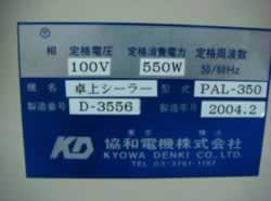 | 中古協和電機卓上型シュリンク包装機/品番 PAL-350 問い合わせ番号 Z-0546-3 |