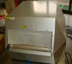 DVDやビデオに、パソコンソフトに、お菓子や化粧品や 医薬品のセットに、ファンシーグッズに、販売促進用に、用途は多様です。 今まで不可能だったDVDビデオのシュリンクが簡単にできます。設定温度(常温〜180℃まで)や現在の温度が一目でわかるようにデジタル表示を搭載。 フィルム包装した商品を投入口のベルトコンベアに載せます。コンベアで移動しながら、温風トンネル内でタイトなシュリンク包装を仕上げます。 |