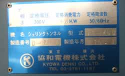コンベアスピード調整は、インバータにより可変できます。 デジタル温度調節器の採用により、炉内の温度が常に安定しています。 冷却回路の採用により、ヒーターカットと同時に炉内が冷却され自動的に運転が停止します。 製造年月 平成15年3月 |