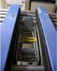 サイドベルト方式で タテ長サイズのケースも安定搬送。 製造年月:1996年8月製造 |