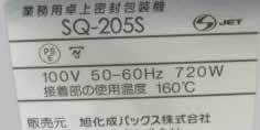 中古卓上密封包装機真空包装機 品番 SQ-205S 問い合わせ番号 Z-0569-8 完売 |