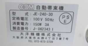 中古大洋精機 自動帯束機/品番 JE-240-30