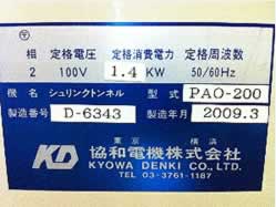 | 中古協和電機シュリンカー/品番 PAO-200 問い合わせ番号 Z-0589-2 |