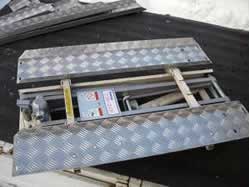 | ■備考 車椅子の方が来店、来社の際に、使用するときだけ・使用する場所に設置し、使用が終わればコンパクトに収納できます。 スロープでは合わせられない場所に合わせる事が出来ます。 本体の他にストッパー1組と道板が2組あります。 道板は長めの物もありますので便利です。 本体下部に横倒れ防止のスタビライザーも付いており、この部材を広げないとリフトが上がらない危険防止機構になっています。 本体寸法: ・折りたたみ時 幅:約37センチ 長さ:約99センチ 高さ:約35センチ 重さ:32キロ ・広げた時 幅:約76センチ 長さ:約99センチ 高さ:11センチ〜最大約75センチ (素人採寸の為誤差はあるかもしれません) 最大積載量200kg ※ご注意 ハンドル一本(平坦地運搬用)と取扱い説明書が欠品です。ハンドルは設置場所へ移動の際に本体に差して運ぶ物です。 重要なリフトの上下の作業に必要な物ではないので、なくても問題はないと思います。 (個人的主観ですが)取説はありませんが、使用に際しての簡単な説明図は添付できます。 使用に際してはあらかじめ数度の練習を行ない、機構や作動方法ついて熟知した後のご使用をお願いします。 中古品の為、この商品を使用中のケガや事故に関しましては、出品者および製造メーカーは一切責任を負いません。 あらかじめご了承ください。 ![]() ![]() ![]() ![]() ■本体・上昇時 ![]() ■ジャッキ部 ![]() ■本体収納時 ![]() ■付属品 ![]() ■製品構成 ●シーザー、リフト部 ●ジャッキ部 ●ガイドレール ●スタビライザー ●平坦地用キャスター ■標準付属品 ●ストッパー ●補助ブリッジ ●ハンドル(平坦地運搬用) ●差し込みT字バー ●油量調整ハンドル ●取扱説明書 ■仕様