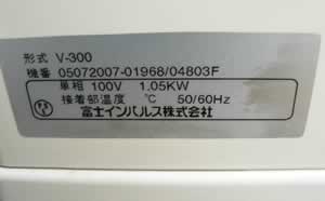 中古富士インパルス脱気シーラー 品番 V-300 問合せ番号 Z-0596-5 完売 |