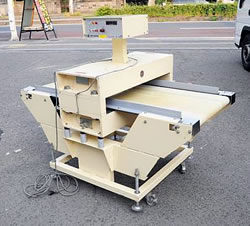| ■特長 ●縫製衣料品の中に紛れ込んだ針、折れ針などの鉄片をコンベアライン上で自動的に能率よく、探知、検針できます。 ●非鉄金属製のボタン・ホック・ファスナーなどの服鉢付属品が装着されている縫製品でも針・折れ針・鉄屑を検出します。 ●トンネル製の探知部で厚物の商品も探知感度いほとんど差が無く、残針があればベルトはストップします。 ■用途 ●子供服、婦人服、紳士服などのアパレル製品 ●パジャマなどのナイトウェア、肌着などのインナーウェア。 ■仕様