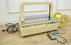 スイッチは手で押すか、足で踏む形になります。 ●使用テープ:指定テープ8o FB・FT・FS ●引締力:7kg ●機械寸法:約幅760×奥行300×高さ406o ●テーブル高さ:188o ●機械重量:20kg ●電源:単相100V |