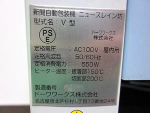中古新聞包装機 ニュースレイン坊 V型 型番 DW-100 |