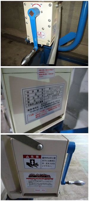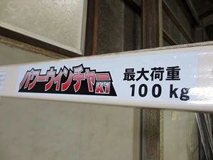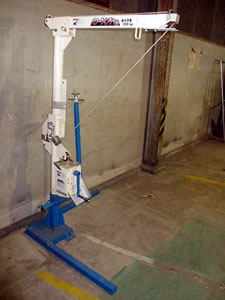 | ■特徴 @手動式ではあるが軽く持ち上げられ、しかも電力を必要としないので燃費の節約にもなる。 Aノーブレーキ構造で荷物を吊り上げた状態で他の作業をすることが可能である。 Bポールの折りたたみ、組立がハンドル操作で簡単に出来、吊り上げ準備の時間を短縮できる。 Cポールオ折りたたんで走行が可能な為、安全走行が出来る。 Dポールの取付け、取外しが一人で簡単に出来る。 EBOXのみ取外して他の昇降機としても利用する事が出来る。 F高齢者など特に、腰、、腕に負担を掛けず、楽に積み降ろしが出来る。 ■前方タイプ (手動式) 本商品は摩擦と張力を利用し、特殊な倍力機構と、その逆機構を組合わせた構造の機能を活用し、人力で重量物をトラック等へ積み降ろしする機械で荷役作業の負担を軽減出来る軽便で安価な手動クレーンです。 ![]() ■仕様