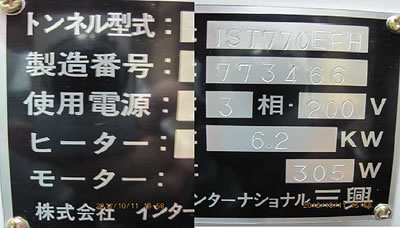 | 中古シュリンクトンネル/品番 IST-770EFH 問い合わせ番号 Z-0618-1 |