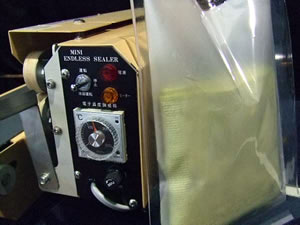 コンベアーが引き出しにより小袋から大袋までシールができます。