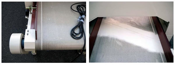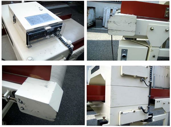 ![]() ![]() ![]() ![]() ■この制御部はすでに生産終了しております。また生産終了後、交換用部品を8年分ストックしていましたが、それもすべて無くなりましたので、万が一、制御部内で故障が発生した場合、修理はできません。機器納入後のベルト交換やローラー交換等は可能です(有償) ■本体に目立つ傷があります。 ![]() ●進行方向に向かって、左側に筋状のキズがあります。このキズはベルトを1周しています。また継ぎ目部分のみ、きれいに拭き取られた跡があります。継ぎ目部分が金属探知機のセンサーを通過したとき、毎回ではありませんが、制御部に大きな反応があります。ですので、感度レベルは5より上げることができません。しかし感度レベル5でも、機器自体の感度としては1.5φ鉄球を検知することができます(※)。機器は画像の現状渡しになります。ベルトは交換可能ですが有償になります。 ※金属探知機は、電気を流す性質をもったもの(導電性のあるもの)に反応します。検査する商品に導電性がある場合、商品に金属が混入していなくてもブザーが鳴り、ベルトが停止します。その場合、商品自身で反応しないように位相で調整します。位相の設定によりましては、感度が大きく変わる場合ありますのでご注意下さい。 ![]() ●本来のブザー(黒い六角形)は使えません。脇にある丸いブザーが金属検知時に鳴ります。ブザーは金属探知機のコンベヤフレームにインシュロックで固定されてあります。