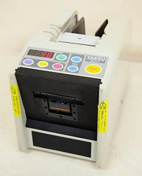非粘着テープもカット可能です。 ■最短5oからカット、ボビンフリー ■ハイパワー、ハイスピード、ロングライフを実現 ■テープばかりか、フィルム、チューブ、アルミ箔もカット ■あらゆるサイズのテープをボビンなしで装着 |