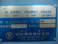 | 中古協和電機シュリンクトンネル/品番 NS-450 問い合わせ番号 Z-0639-6 |