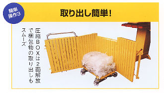 ■特徴 ●ISO14001、環境対策の手段として ●容器包装リサイクル法対策 ●処理コスト・運搬コストの削減に ●廃棄物の引き取り回数を減らし CO2発生抑制に ●分別圧縮でリサイクルの推進に ●保管場所の有効活用 |