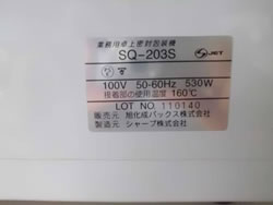 | 中古美品卓上密封包装機/品番 SQ-203S 問い合わせ番号 Z-0640-5 |