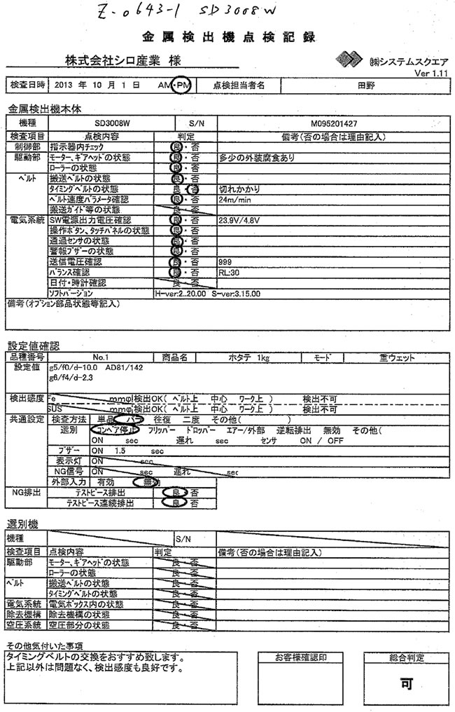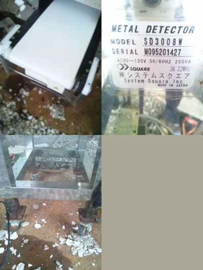 ベルトにて搬送されるワーク中に含まれる金属成分を検出し、報知する装置です。 |