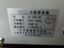 | 中古大洋精機 自動帯束機/品番 JE-240-40 製造番号J-06201E 問い合わせ番号 Z-0643-3 |