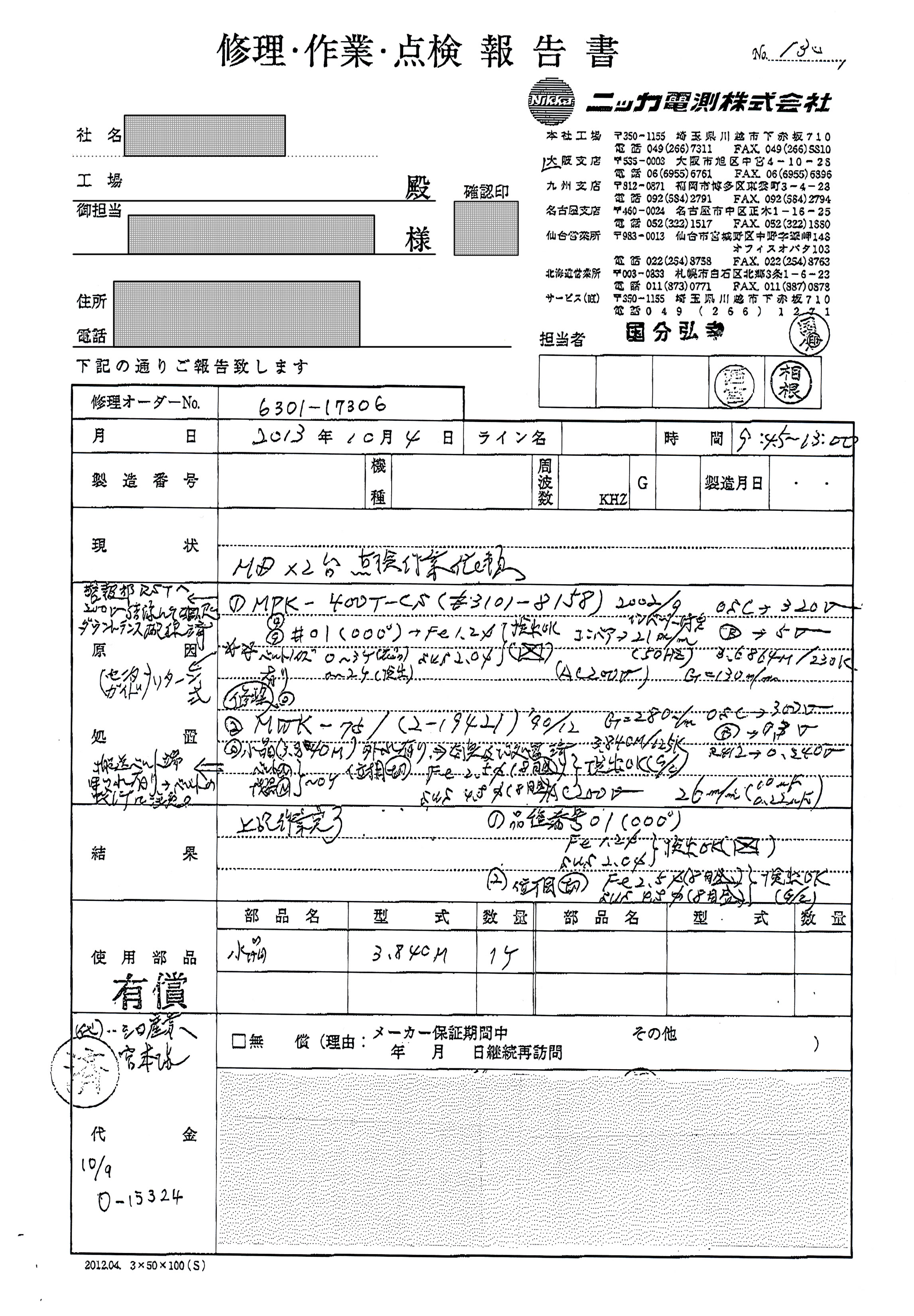 ■修理・作業・点検報告書