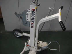 | ■特長 前輪にはφ250の車輪を採用しましたので走行性に優れています。 自重も軽くなり機体の取り回しが楽に行えます。 軽量時の台秤りへの積みおろしも楽々できます。 ![]() ![]() ■仕様
