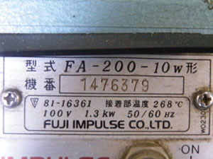 中古富士インパルスシーラー 品番 FA-200-10W 問い合わせ番号 Z-0648-7 限定1台 特価 ¥86,500.- |