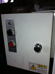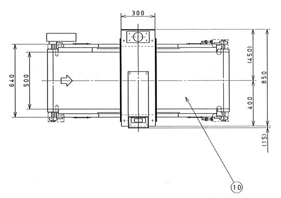 検出能力: Fe φ2.0 SUS φ3.0 通過幅 545mm ベルト幅 500mm 通過高さ 250mm 全長約1630mm 全幅約900mm 全高約1650mm 全自重約150kg |