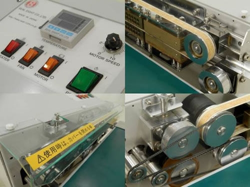 | ■特長 ●スピードコントロール内蔵 スピードコントロールを内蔵していますので、即座にお好みのスピードに調節出来ます。 作業内容や作業者に応じた適切なシールスピードは効率的で安全、確実な作業環境の構築に役立ちます。 ●シール温度 シール温度は、0℃〜220℃まで調整出来ます。 作業内容に応じた適切なシール温度は、安全で確実な作業を実現致します。 ●メンテナンス効率の向上 部品の交換等が簡単に行える設計により、メンテナンス効率の向上を実現しました。 メンテナンス効率の向上は、メンテナンス時間の短縮と共に、確実で信頼性のある作業環境の構築にも貢献致します。 ●コンパクト設計 高さ310mm、幅600mm、奥行き460〜540mm、重量28kgのコンパクトで軽量な設計なので、設置スペースをとりません。 また持ち運びも無理なく行えます ![]() ![]() ![]() ![]() ![]() ■脱酸素剤を使用する洋菓子や一口饅頭等の和菓子のシールに最適との評価を受けた大ヒットのロングセラー商品 です。 ![]() ■シール模様 下図の横目模様が基本です。 正目模様はオプションとなります。 マッチングにつきましては、営業担当にご相談ください。 ![]() ■寸法図 ![]() ![]() ![]() ■仕様