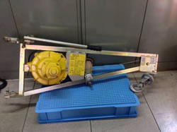 | ■特長 ●簡単据付 足場パイプへの据付は、付属のストッパーをセットし、2箇所にワンタッチでできます。 ●軽量小型ボディー 軽量小型なので、乗用車のトランクに楽に入ります。また、手動ハンドル部を持って楽に持ち運べます。 ●二重ブレーキ 独自のメカニカルブレーキを採用し、発電制動と併用しているため、二重ブレーキで安全に停止します。 ●逆巻き防止付き ワイヤロープのたるみ、乱れ巻き等の原因によって巻き降ろし中の荷物が逆に巻き上がるのを発生と同時に自動的に停止する安全装置、逆巻きリミットレバー付です。 ●すべりクラッチ付き 巻上中、荷の引っ掛けなどによる衝撃荷重が発生したときにすべりクラッチ機構が働き、本体を保護します。 ●旋回は手動方式 手動で270〜360°の旋回が可能で、建築作業現場の省力化に役立ちます。作業に併せて旋回引き込み時、手動ハンドルを60°ごと3位置に使い分けられます。 ●スイベルフック 荷の回転によるワイヤロープのより戻しを防ぐスイベル式のフックを採用しています。また、荷の外れ止め付きなので、作業中の外れを防ぎます。 ●ペンダント式スイッチ 操作スイッチはペンダント式なので、操作する場所を選びません。自由な位置で安全に操作することができます。 別途オプション操作用の中継コード10mあり。 ●シリースモーター 低電圧に強いシリースモーターを使用しています。 ●100V電源 電源AC100V(50/60HZ)なので、家庭電源で動きます。 ![]() ■仕様