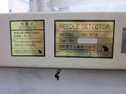 製品中にまぎれこんだ縫い針、 まち針、 ミシン針、 またはそれらの折れ針などを検出すると、 ブザーで警報を発し検出ランプを点灯します。