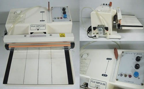 機種バリエーションとして 厚さ0.3mm(重ね合わせ合計数値)までの包材のシールができる片側加熱タイプ(V-300)と 厚さ0.4mm(重ね合わせ合計数値)までの厚手袋、ラミネート袋に対応できる上下加熱タイプ(V-300-10W)があります。V-300-10Wは、厚手袋やガゼット袋などにも対応します。 ICパーツや、その他工業用品などの包装に使用するガスバリヤ性包材、静電気シールドフィルム、帯電防止フィルムの包材に対応します。 |