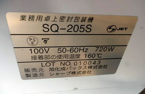 | 中古卓上密封包装機ドレンユニット付/品番 SQ-205S 問い合わせ番号 Z-0685-3 |