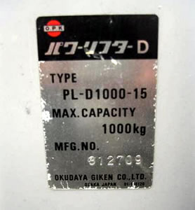 | 中古をくだ屋バッテリー式パワーリフター/品番 PL-D1000-15 問い合わせ番号 Z-0685-7 |