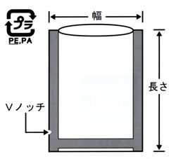 ■製品仕様 ・三方シール袋 ・Vノッチ付 ・100枚外装入り ・五層構成 ・ボイル100℃30分 ・冷凍-40℃ ■寸法・価格 ![]()