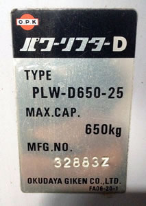 中古をくだ屋バッテリー式パワーリフター 品番 PLW-D650-25 問い合わせ番号 Z-0691-7 完売 |