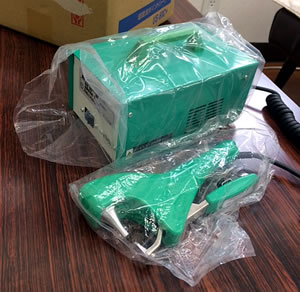 | ■特長 ●様々な材質のフードパックに対応 縦振動子の採用で発熱効率をアップさせ、幅広い用途の材質のフードパックでも確実にポイントシールできます。また、異材質のものでもシールできます。 ●長時間の作業でも疲れません 軽くて、握りやすい樹脂製のハンドルですので長時間の作業でも疲れません。 ●仕上がり精度が安定します 発振時間をタイマーで設定できますので、シールの仕上がり精度が安定します。ポイントシール寸法が小さくピール性が高いシールを行います。 ●すぐ使えます シール工程の時だけ瞬間的に振動による熱を発生させますので予熱時間の必要が無く、スイッチを入れればすぐに使用できます。 ●安全、衛生的です 常時発熱している部分がなく、火傷の危険性が低いです。(連続作業でのシール部の蓄熱は発生します。)また、フードパックを熱溶着させますので食品に異物(ステープラーの針、セロハンテープなど)が混入する危険性がありません。 ●用途に合わせたアンビルをご用意 A-PET用とOPS、PVC用のアンビルがあり、用途に合わせて、より接着強度を高めることができます。