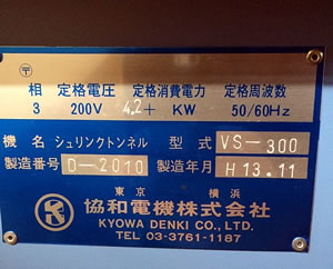 | 中古協和電機シュリンクトンネル/品番 VS-300 問い合わせ番号 Z-0697-7 |