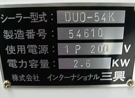 中古シュリンク包装機/品番 DUO-54K