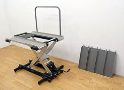 アルミ製で軽く、電源のいらない足踏式。 折り畳んで車に積み込め、どこでも積み降ろし作業ができます。 |
