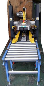 広幅上下ベルトで軽いケース、重いケース、また高さが高いケースや細長ケースも確実にシーリングできます。 ギアモーターは、50,000時間の使用を保証します。 優れた耐久性の、傷にも強い無塩化エポキシ塗装を施してあります。 ※写真【入口部ローラーコンベアー】【テープ】はオプションです。 |