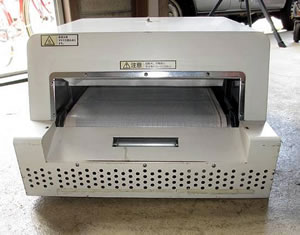 コンベアベルト方式は、梱包物が熱処理部に落下することのない安全構造です。