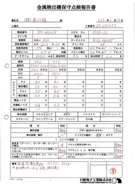 中古日新電子金属検出機