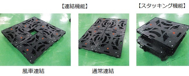 ●700x500mmの大きな積載面で運搬効率がアップ ●4枚連結でパレット台車に業界初の連結方式採用(メーカー特許出願中) |