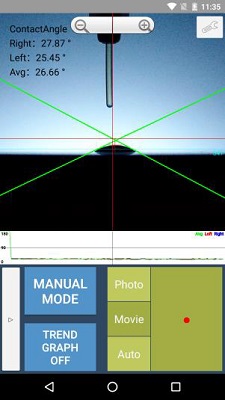 ■特長 ユニークで革新的なスタンドアローン設計によりPCやFAカメラを使わないで、従来より高性能な自動接触角計測を実現しました。 自動接触角計測は、分子レベルの清浄度評価や濡れ性、均一性を定量的に評価します。 同時に作業者によるバラつき問題も改善いたします。 ●フォーカス調整機能 マニュアルフォーカス機能を採用いたしました。 透明、光沢、梨地などワーク表面状態に応じた最適なフォーカス設定が可能になりました。 ![]() ●ワンタッチ計測 計測アイコンをタッチするだけで接触角(左接触角L,右接触角R,L+R/2左右平均の接触角)計測が可能。自動解析により測定者のバラつきを無くします。 ●各種校正に対応 ・ISO書類(校正証明、試験成績書、トレーサビリティ体系図) ※オプション ・JISR3257準拠 ●パソコンに送る Wifi機能やUSBTypeCケーブルによってパソコンとExcel・画像データ共有が簡単に可能になります。 ●自動、手動モード簡単選択 AUTOMODE(自動)接線法計測 接触角L、R、LR平均表示 連続計測により経時変化測定も対応。 MANUALMODE(手動)θ/2法計測 接触角表示 ■機能 ・マニュアル焦点合わせ機能 ・静的、動接触角計測L、R、LR平均表示 ・経時変化計測、グラフ表示 ・接触角演算方法 接線法(自動)、θ/2法(手動) ・データの外部出力や保存(jpeg、csv) ・拡張収縮、傾斜法、接触角測定対応 ・モバイル対応バッテリー駆動 ■用途 ・濡れ性評価 ・親水性評価 ・清浄度評価 ■導入事例 ●先端素材 フィルム素材への表面処理で均一性の評価に貢献しています。 ![]() ●自動車、実装 高い封し性が求められる部品の清浄度や品質評価に貢献しています。 ![]() ●精密部品 精密部品の品質管理で洗浄や品質の検査に貢献しています。 ![]() ●ヘルスケア 生体親和性の向上にインプラント表面の機能改質評価に貢献しています。 ![]() ■仕様