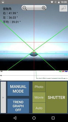 ■特長 ●ワンタッチ計測 計測アイコンをタッチするだけで接触角(左接触角L,右接触角R,L+R/2左右平均の接触角)計測が15回/秒で可能。 自動解析により測定者のバラつきを無くします。 ●パソコンに送る Wifi機能やUSBTypeCケーブルによってパソコンとExcel・画像データ共有が簡単に可能になります。 ●新機能フォーカス調整機能 透明、光沢、梨地などワーク表面状態に応じた手動フォーカス設定が可能になりました。 ●自動、手動モード簡単選択 AUTOMODE(自動)接線法計測接触角L、R、LR平均表示 連続計測により経時変化測定も対応。 MANUALMODE(手動)θ/2法計測接触角表示 ●サンプルに置くだけ、試料カット不要。 ●パソコン接続不要。ワイヤレス。 ●電池駆動。測定場所を選びません。 ●動的・静接触角、前進後退測定 ●本体寸法W140xD140xH160mm ●重量1.5kg ●日本語、英対応 ●12.5Mpixcel、超高精細画像 ■用途例 ・屋外計測 ・路面、床面計測用途 ・大面積サンプル計測 ・濡れ性評価 ・親水性評価 ・清浄度評価 ![]()