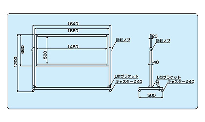 | ■特長 ●鏡面がアルミでできているので割れにくく安全です。 ●衝撃・ショックに強く耐久性にも優れています。 ●ミラーの角度を変えることができるので、使用範囲が広いのも特徴。 ●キャスター式なので、移動が簡単(ストッパー付き) ●高さを1200mmと1000mmに調整可能 ●機械、ラインの点検または見えにくい所でのチェックなどに最適 ●本体サイズ:W1680×H1200(1000)×D500mm ●重量:14.5kg ■使用例 ![]() ■寸法図 ![]() ■仕様