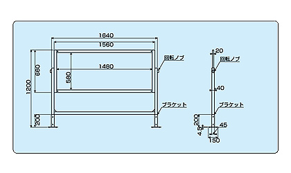 ●高さは1200mmと1000mmに調整可能 ●本体サイズ:W1680×H1200(1000)×D40mm ●アンカーブラケットサイズ:W150×D75mm ●材質・仕上げ:スチール・焼付塗装 ■寸法図 ![]() ■仕様