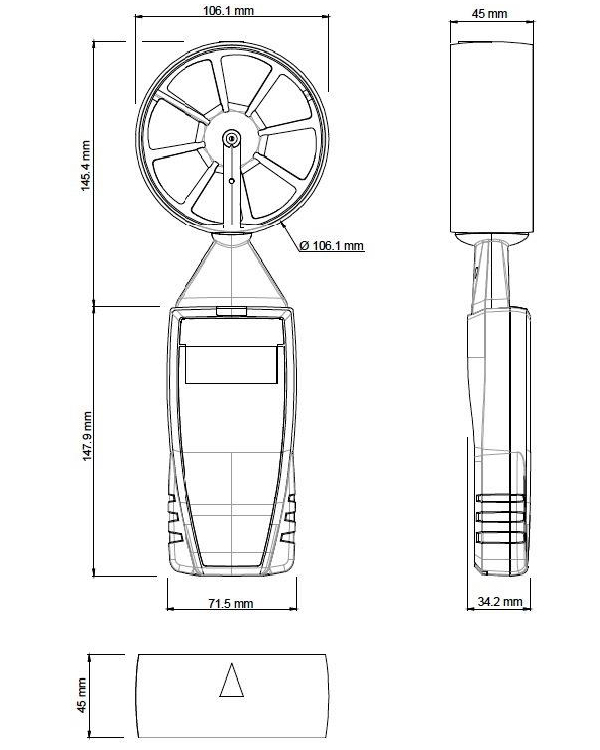 | ■特徴 ●片手簡単操作のデジタル風速計 ●ホールド表示機能 ●省電力自動電源オフ20分後 ●収納ケース付 見取り図 ■仕様
