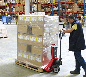 ●計量運搬作業の一体化で作業効率化。 ●電池駆動式ハンドパレット 検定付タイプ→M1311KT-2200K |